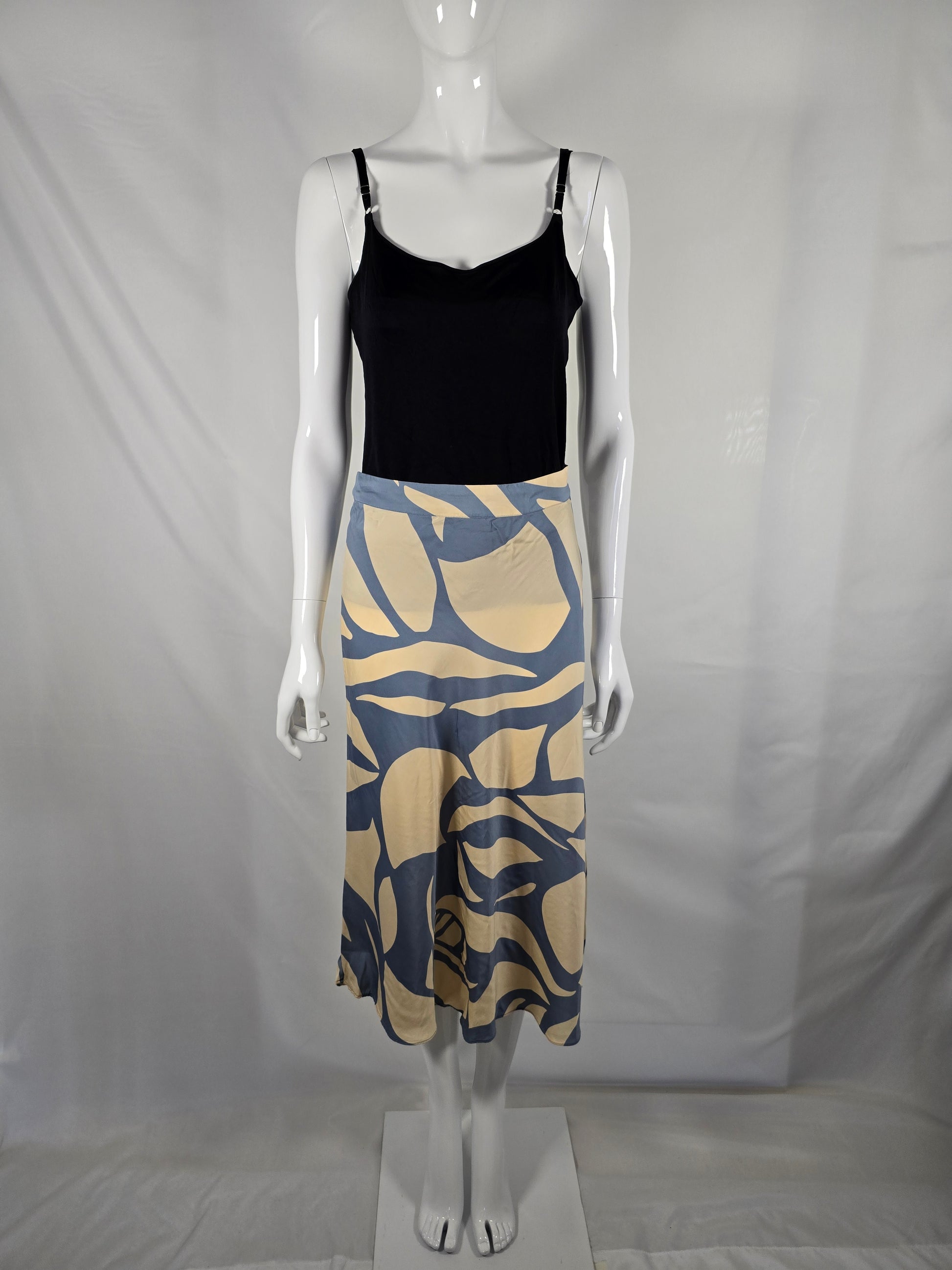 Passform & Pflegehinweis: Locker fallender Midirock mit elastischem Bund; bei 30 °C waschbar, links waschen, zum Trocknen aufhängen.